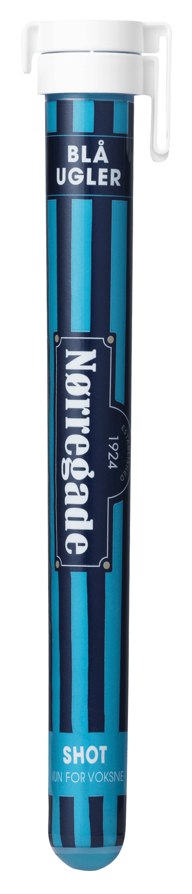 Blå Ugler er en del af Nørregades shotserie, der foruden denne også består af Kongen af Danmark, Salte Ugler og Lakrids Ugler.